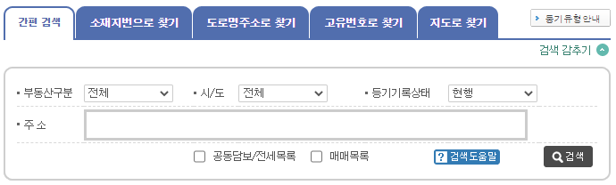 그럼 한번 등기부 열람을 해보도록 하겠습니다. 저는 지도로 찾기 메뉴를 이용해보겠습니다.