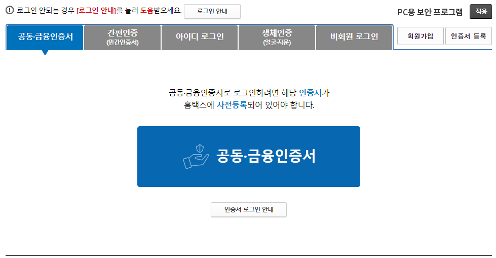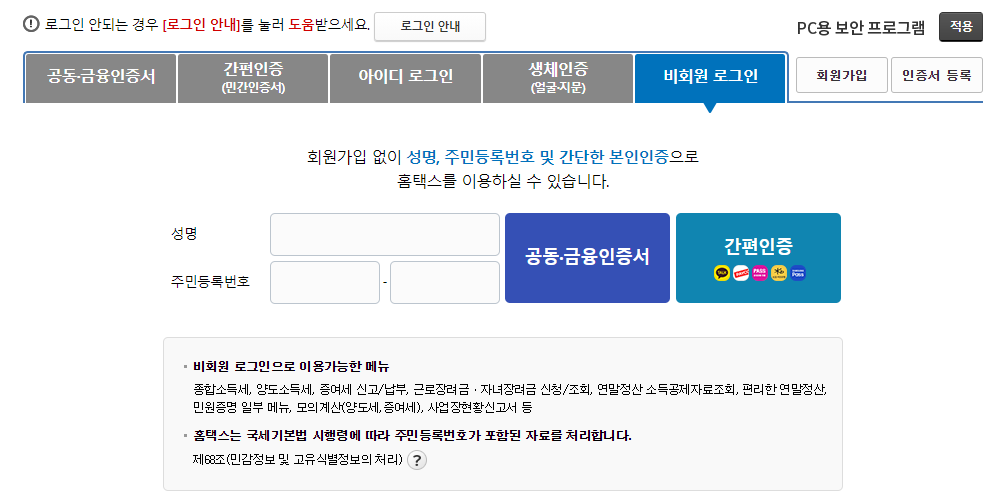 조회를 하려면 로그인을 하여야 하기때문에 로그인을 하시면 되고 로그인은 공동인증서를 이용하셔도 되고 간편인증을 이용하셔도 됩니다.
