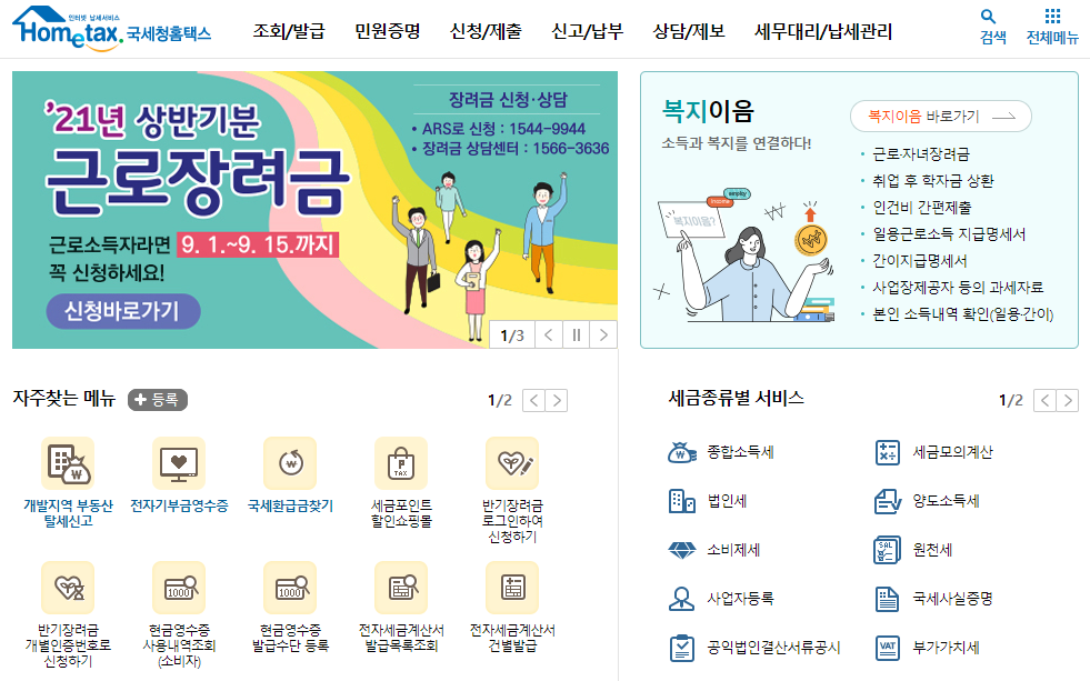 국세청 현금영수증 홈페이지에 접속하려면 먼저 국세청 홈택스에 접속하시기 바랍니다.