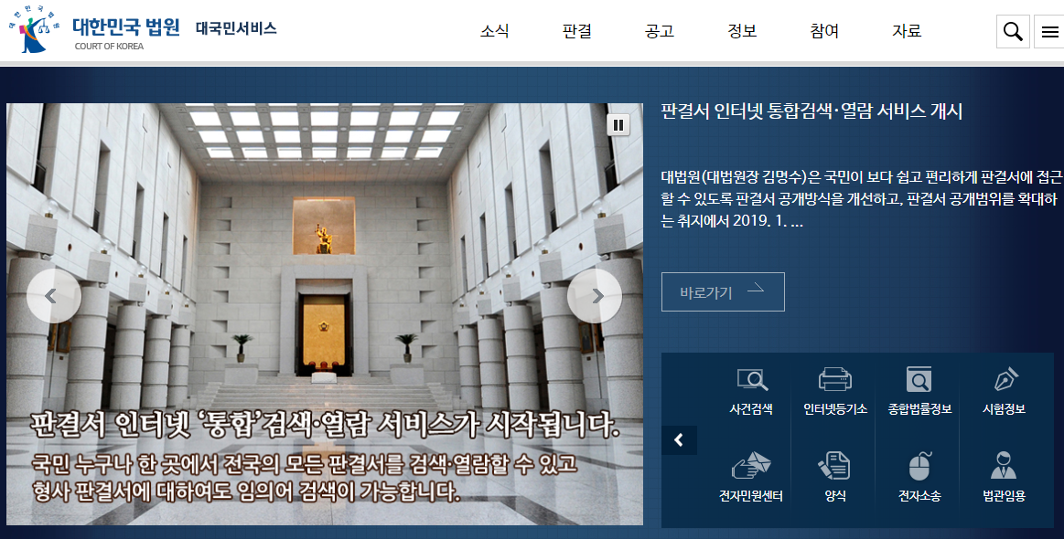 검색창에 대한민국 법원이라고 검색하시면 바로 찾으실 수 있습니다.