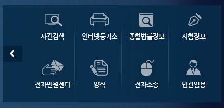 홈페이지 오른쪽편을 보시면 사건검색, 인터넷 등기소, 종합법률정보 등의 메뉴들이 보입니다.