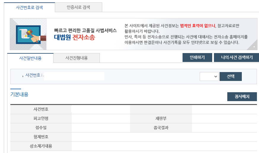 마지막으로 대법원 나의사건검색을 이용하려면 사건번호와 당사자명을 알고 정확하게 있으셔야합니다.