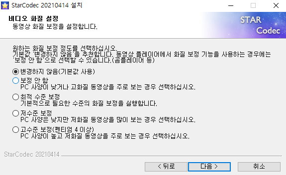 그리고 비디오 화질을 설정할 수 있는 창이 보이실텐데 변경하지 않음에 체크를 하신 후 다음으로 넘어가면 됩니다.