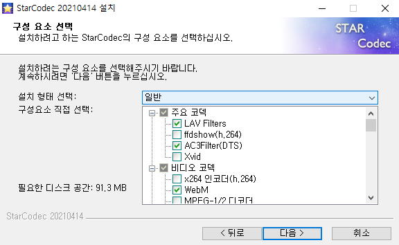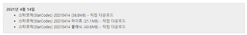 클릭하시면 세가지 종류의 통합코덱이 나오게 됩니다.