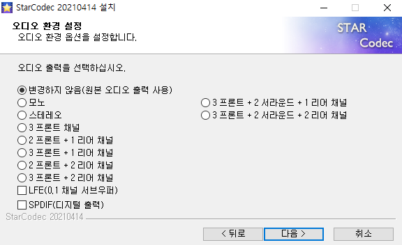 해제를 한 후 다음으로 넘어가면 오디오 출력을 선택할 수 있게 됩니다.