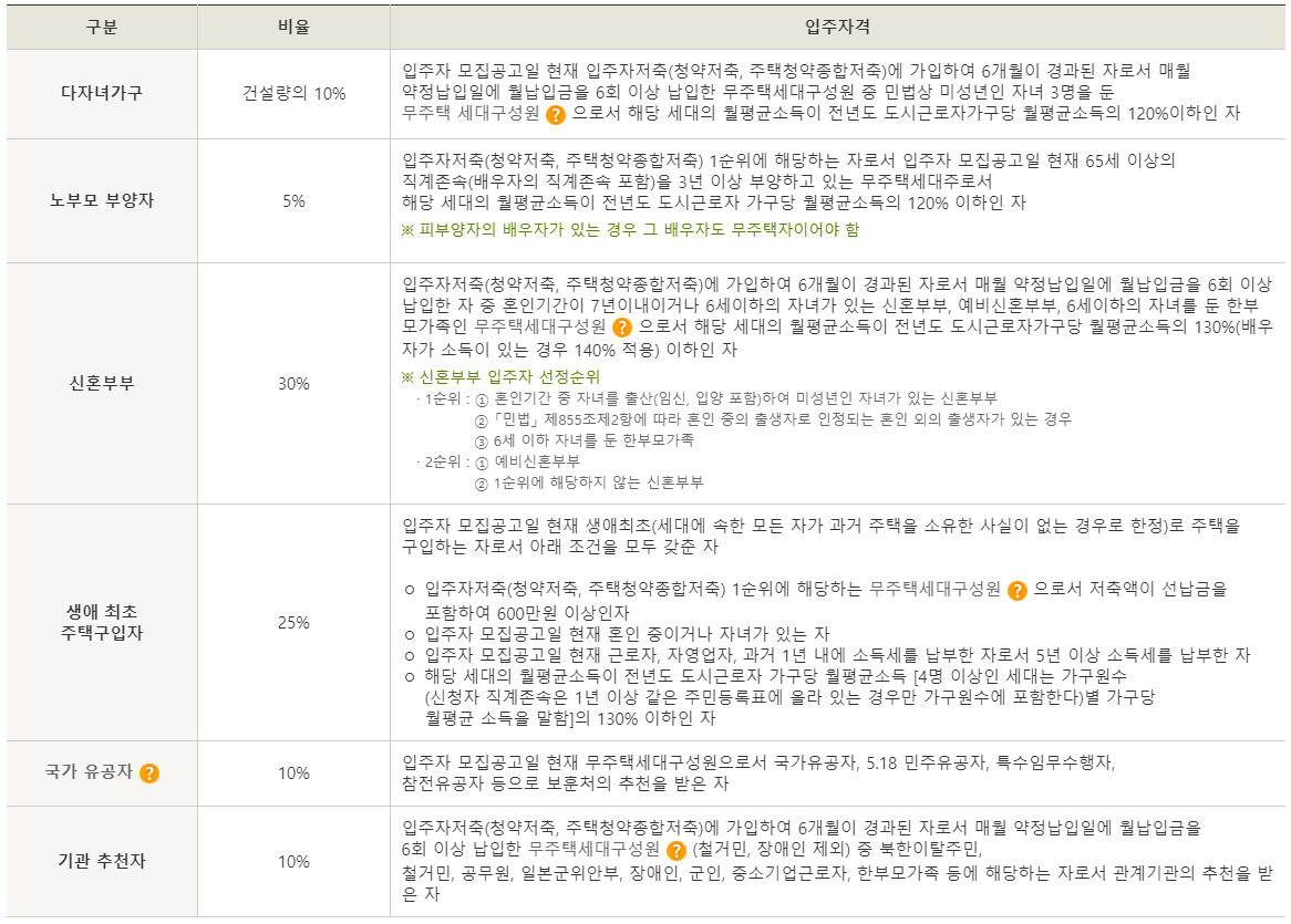 나머지 국가 유공자, 기관 추천자 입주조건은 읽어보시기 바랍니다.