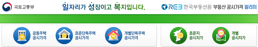 홈페이지에 접속하셔서 위쪽을 보시면 여러가지 공시가격, 공시지가 메뉴들이 있습니다.