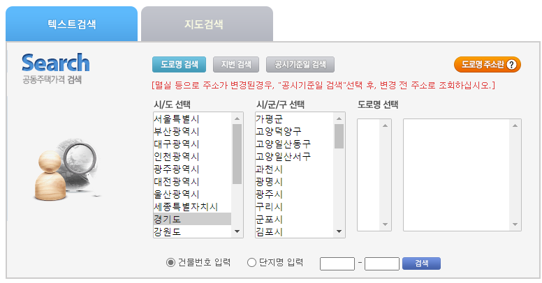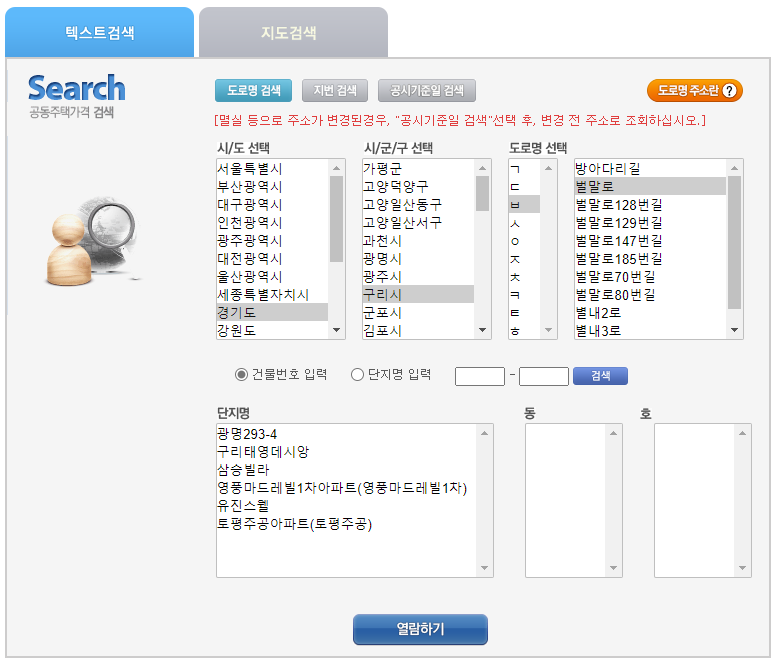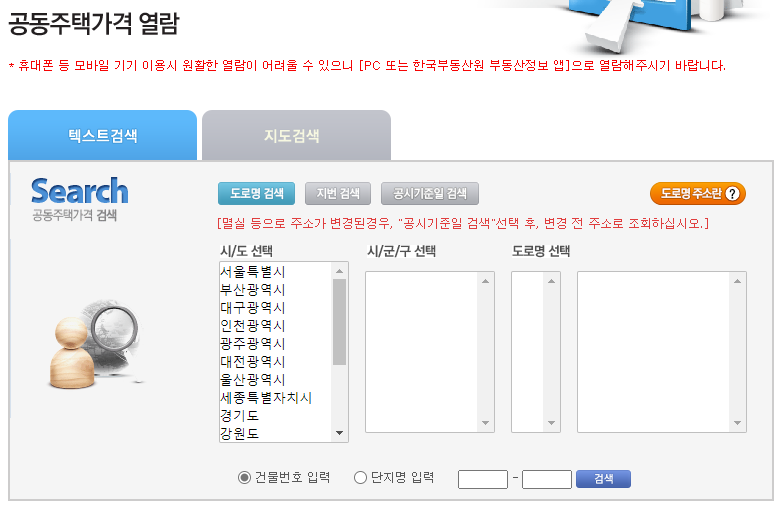 공동주택 공시가격열람은 텍스트, 지도로 하실 수 있습니다.