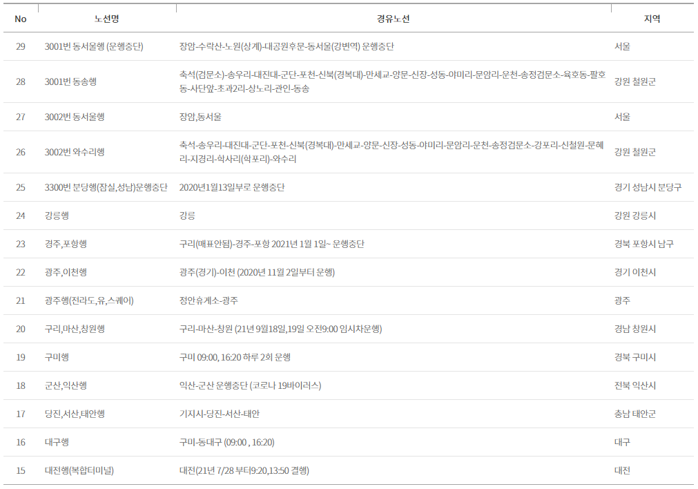의정부 시외버스터미널 운행시간표 조회방법을 설명드렸는데 다른 지역을 확인하고 싶은 분들은 직접 홈페이지에 접속하셔서 확인하시기 바랍니다.