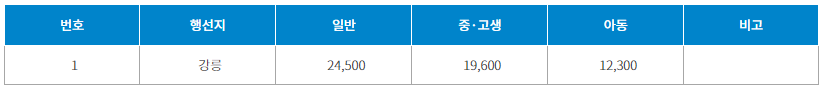 시간표 아래를 보시면 요금표도 보실 수 있습니다.