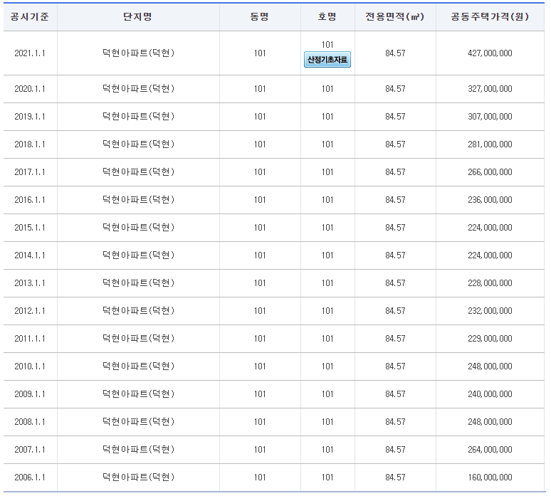 ※ 아파트 공시지가조회
