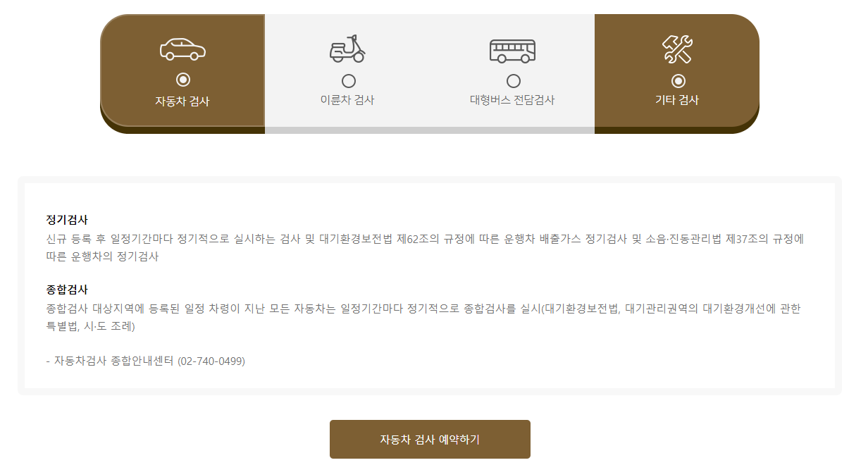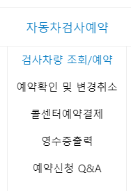 마지막으로 자동차검사기간 조회는 자동차 검사 예약 메뉴를 통해서도 하실 수 있습니다.