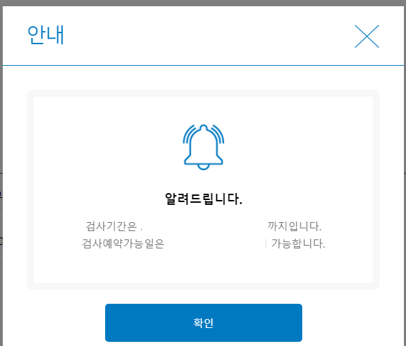 조회를 하시고나면 검시기간, 검사예약가능일이 나오게 되는데 자동차 검사를 몇년, 몇월 며칠까지 받아라고 조회가 것입니다.