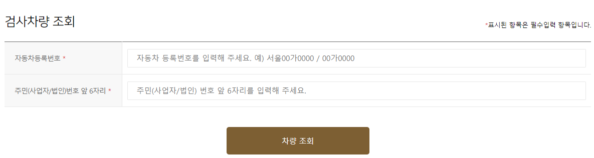 정확하게 입력 후 차량 조회 버튼을 클릭하시면 자동차검사기간을 확인하실 수 있습니다.