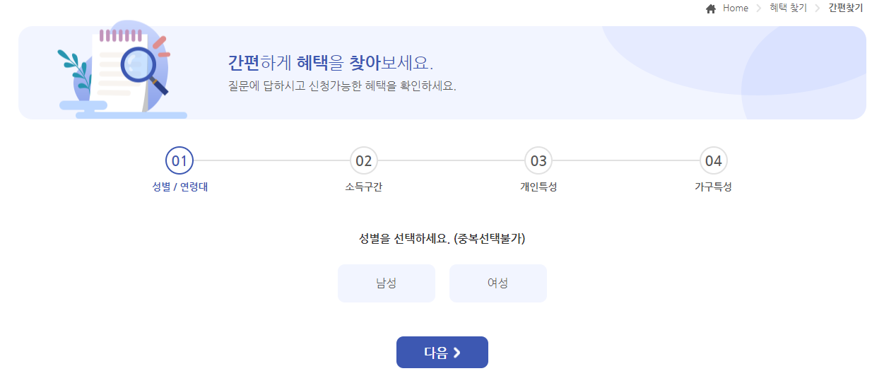 마지막으로 혹시나 혜택에서 나오지 않는다면 간편 헤택 찾기를 하실 수 있습니다.