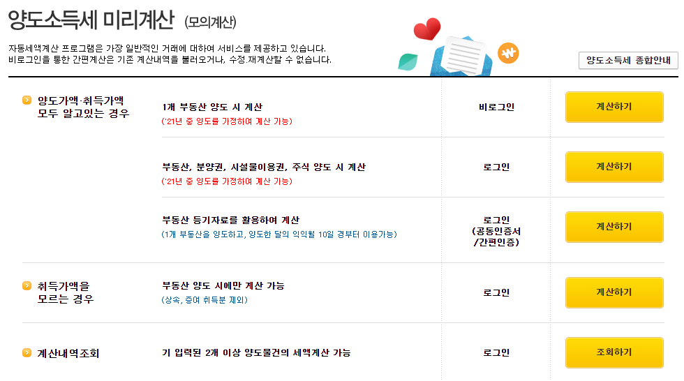 클릭하면 양도세를 모의계산할 수 있는 페이지로 이동이 됩니다.