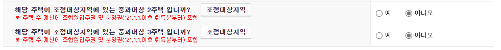 그리고 마지막으로 조정대상지역을 선택할 때 조정대상지역 버튼을 보셨을 것입니다.