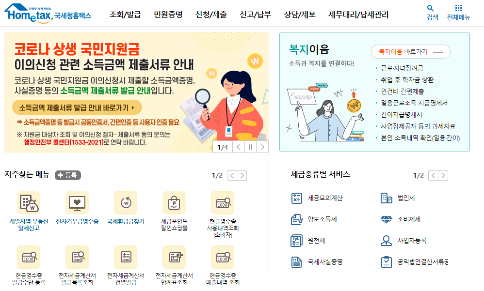 직장인 또는 개인사업자이신분들 다들 알고계신 사이트라고 생각하며 국세청 홈택스라고 검색하시면 바로 찾으실 수 있을 것입니다.