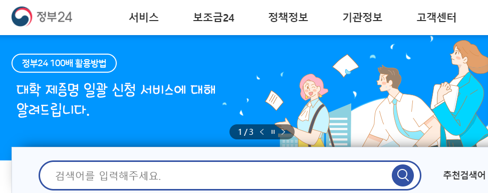 졸업증명서 인터넷발급을 발으시려면 정부 24 홈페이지에 접속하셔야 합니다.