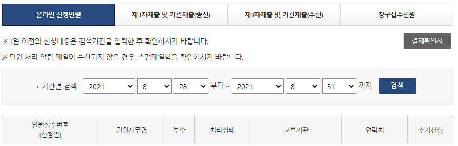 초, 중, 고등학교 졸업증명서 인터넷발급 신청을 제대로 하셨으면 온라인 신청민원 내역에서 확인을 할 수 있고 클릭하시면 프린터로 졸업증명서를 출력하실 수 있습니다.